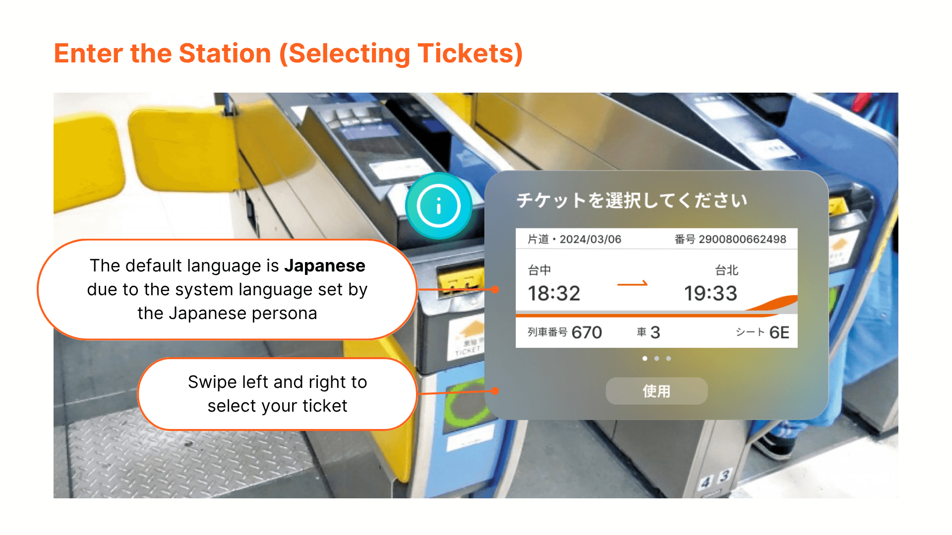 Enable non-native Mandarin speakers to successfully board the correct THSR train using Vision Pro.